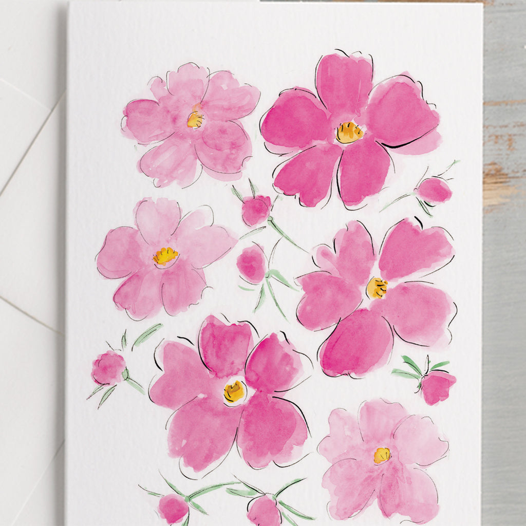 'Cosmos' Summer Flower Card is part of the Summer range in the Spring/Summer collection of greeting cards, postcard sets and framed original art pieces.